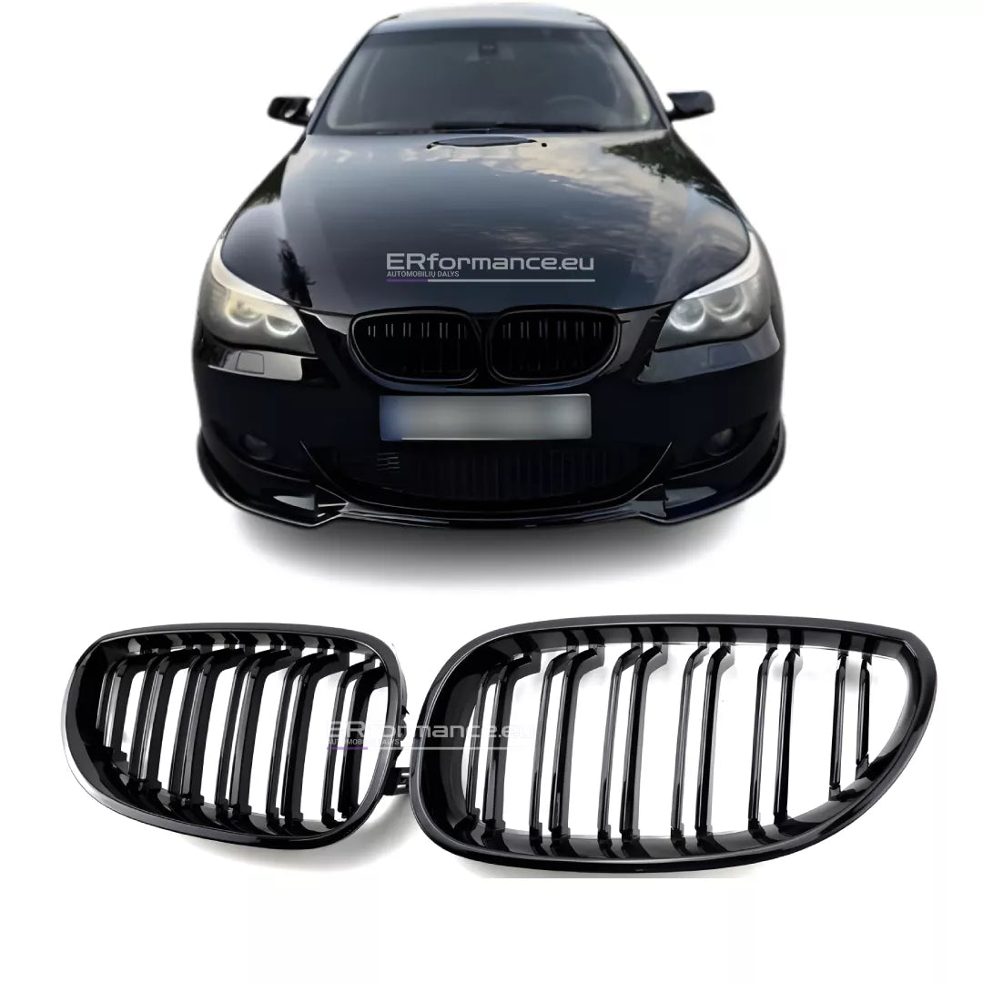 BMW E60 E61 dvigubos grotelės (03-10), blizgios juodos