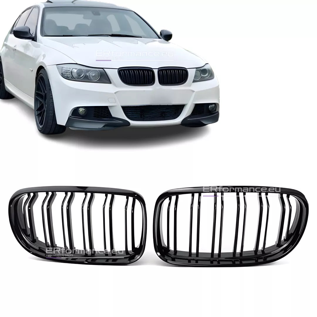 BMW E90 E91 dvigubos grotelės LCI (09-13), blizgios juodos
